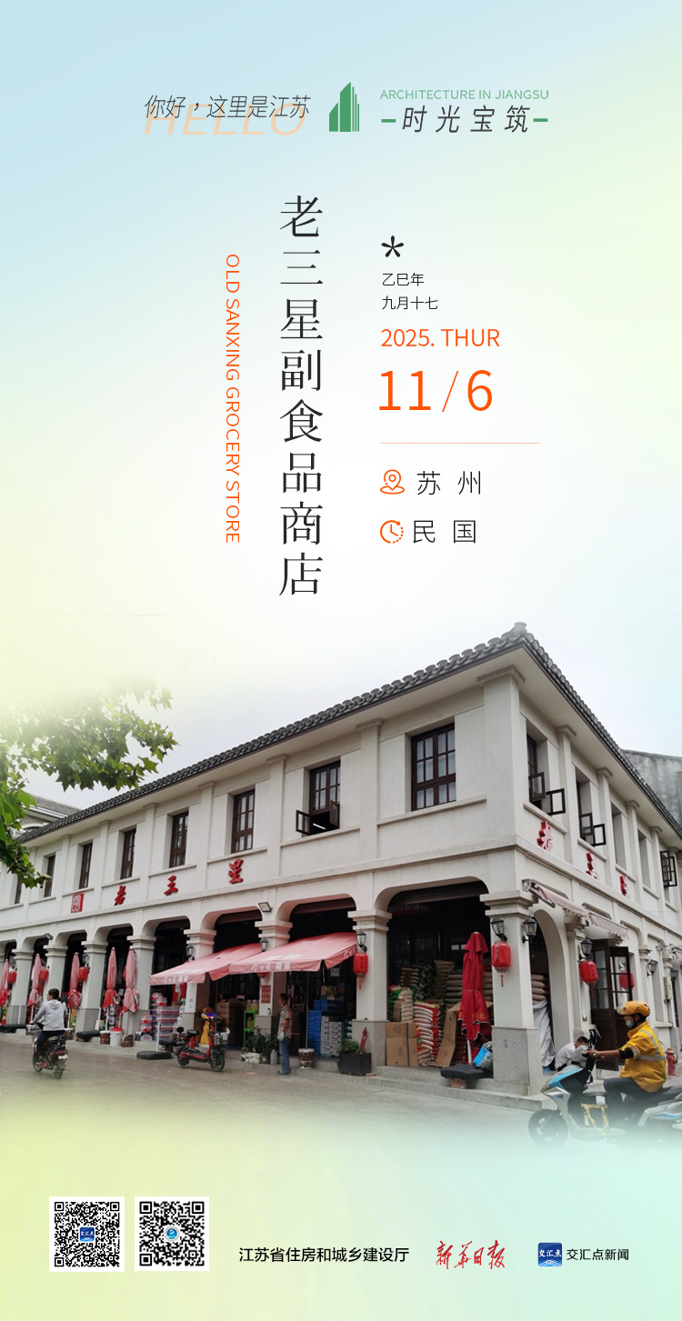 老三星副食品商店旧址位于苏州常熟市南门君子弄和平桥街之间。坐东朝西,硬山顶,砖木结构,是一幢6开间楼的民国时期建筑,目前仍为老三星名下的副食品商店。老三星店号由民国沿传至今。