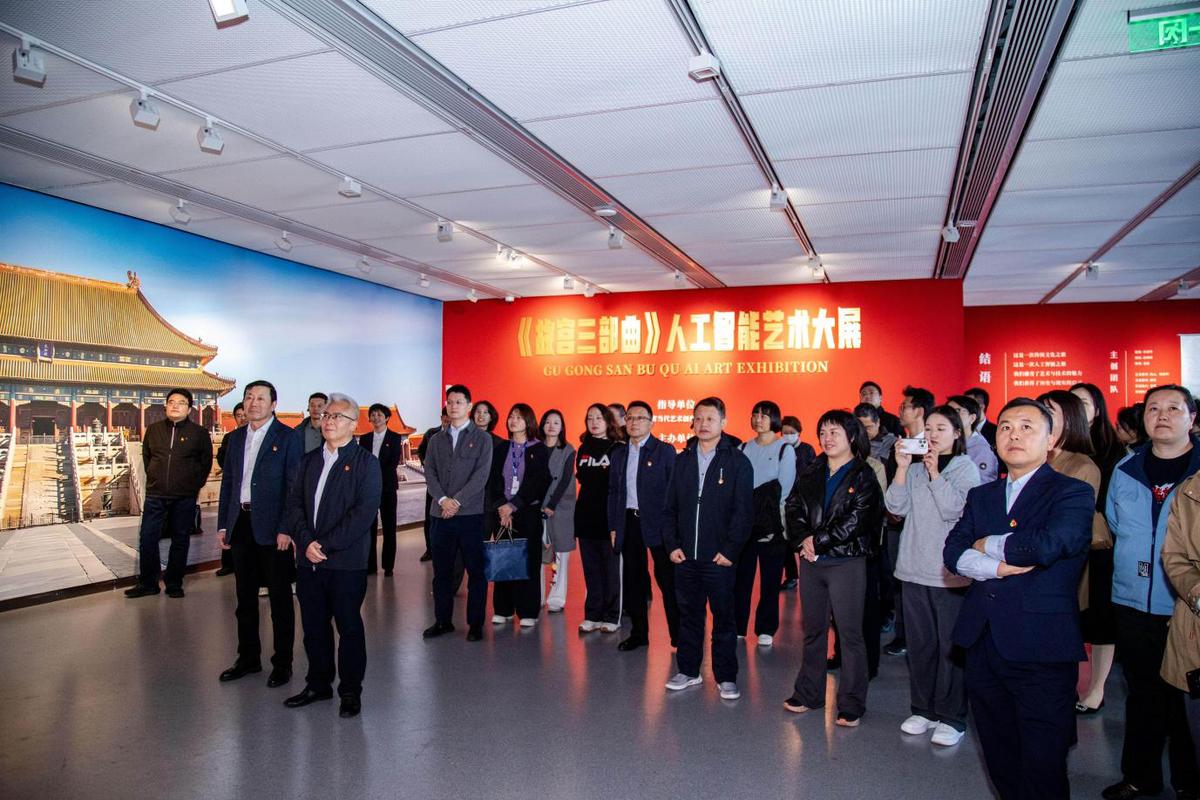 当日下午两点,联盟成员单位代表们准时集结于此,开启这场兼具文化体验与党建交流的“打卡之旅”。在洋河专业讲解员的引导下,代表们首先走进文化艺术中心一楼的洋河酒文化展厅,开启沉浸式酒文化探索。从汉代酿酒技艺的千年传承,到现代智能化酿造工艺的创新突破,展厅内的图文、实物与多媒体展示,让代表们全方位了解洋河酒文化的深厚积淀,切身感受传统产业与文化创新融合的独特魅力。随后,代表们前往四楼美术馆参观《故宫三部曲》特展,该展览借助AI技术将文学叙事“数字转译”,让沉睡千年的历史走出书本,化为可感、可触、可互动的沉浸式文旅体验,为在场代表带来一场别开生面的文化盛宴。