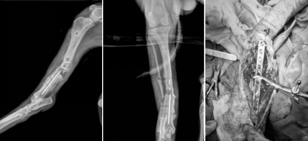 宋火松院长接诊过一例极具挑战性的骨科病例——一只3岁多的萨摩耶犬“暴雪”,其右侧胫骨骨折,虽经三次手术干预,仍未能实现骨愈合,发展为复杂的陈旧性骨折。