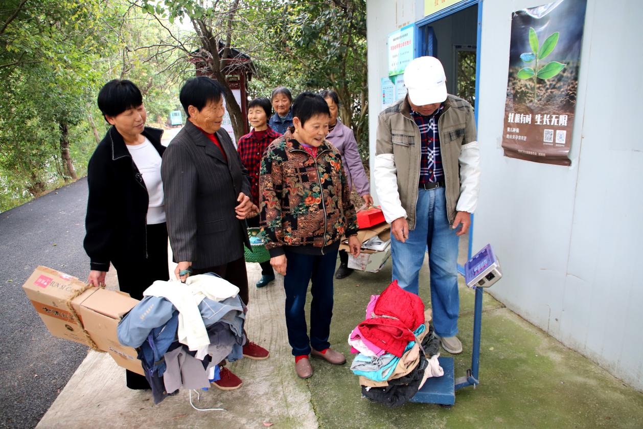 11月6日,南京市高淳区桠溪街道顾陇村魏家自然村的垃圾分类兑换超市里热闹非凡,村民们将可回收垃圾称重后通过积分卡有序进行商品兑换。