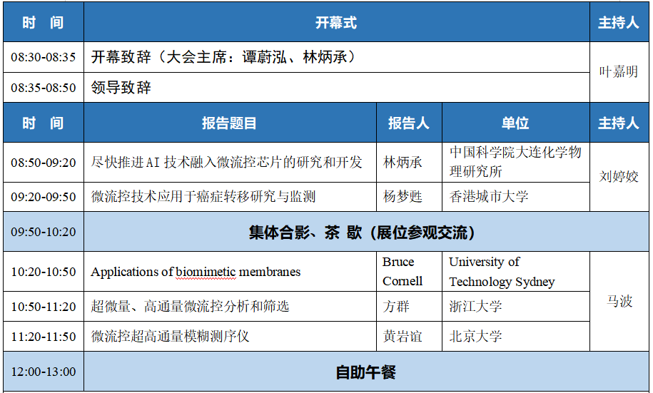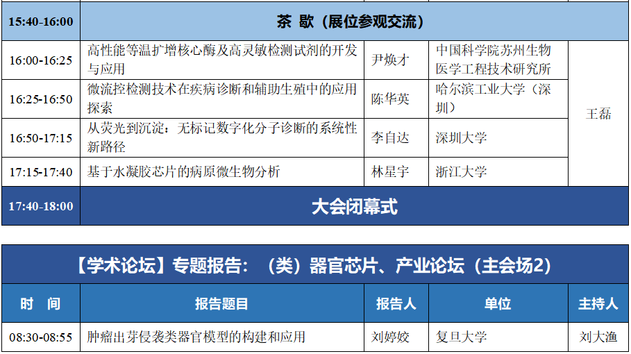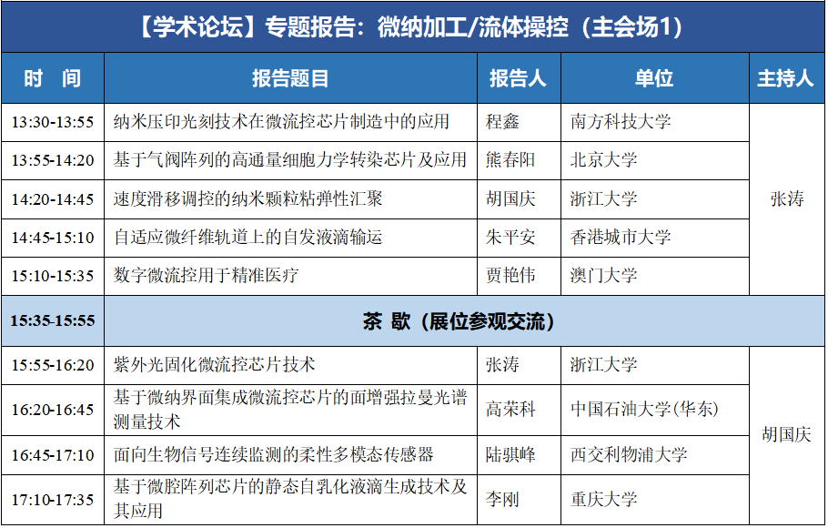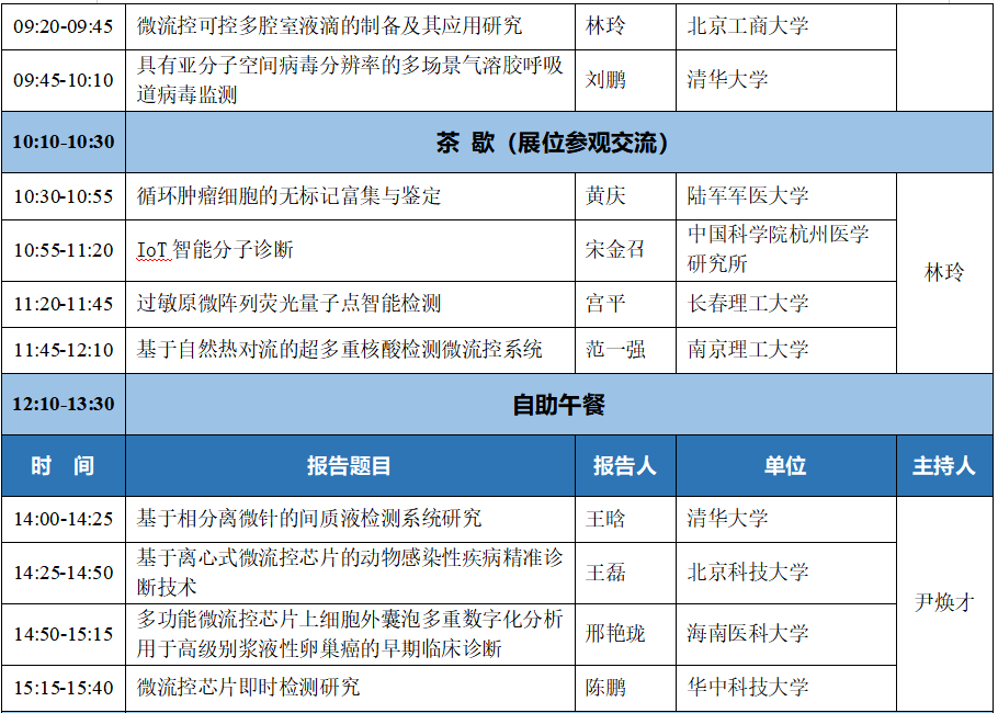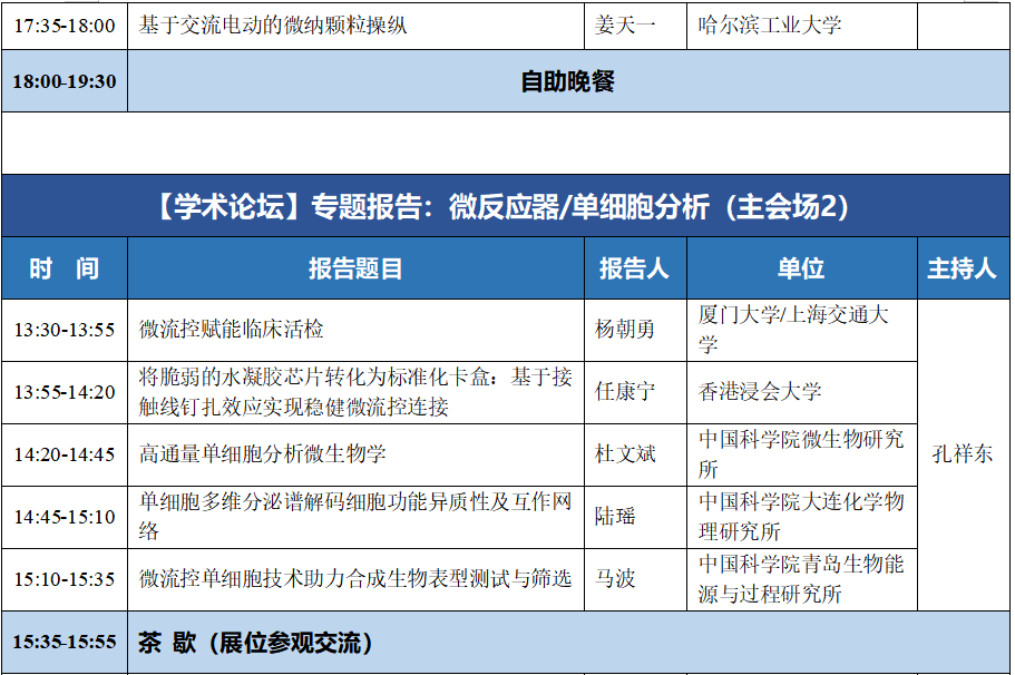 (八)微流控产业论坛:工程化与产业化经验交流、微流控芯片产品开发中的关键及共性问题、微流控产品展示及推介等;