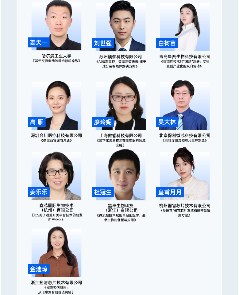 2025年11月21-23日,本届“双论坛”将继续秉承“前沿、专业、高端”的组织理念,以微流控核心技术研究及其在POCT、单细胞分析、器官芯片、材料合成、药物筛选等领域中的应用为主线,聚焦世界科技前沿,促进各行业微流控科技及产业工作者间的信息交流和深化合作,深入交流学习微流控芯片的新技术、新工艺、新产品和新路线,汇聚全球顶尖学者、产业领袖与知名投资机构,共同探讨微流控技术的前沿进展、产业化路径及未来趋势,为学术界与产业界搭建深度交流与合作的桥梁,持续推动微流控学科和产业化发展。
