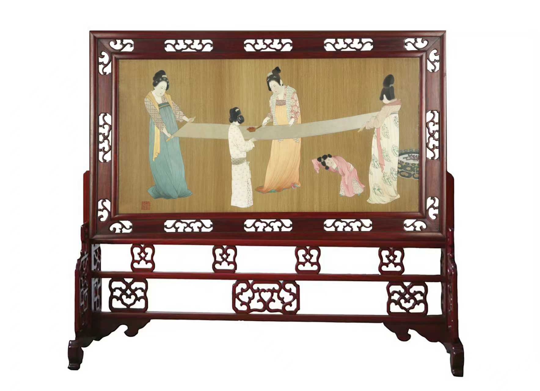 此次,苏州刺绣研究所还带来《双面异色猫》与《捣练图》,尤其是《捣练图》上人物发根丝丝可见,面部十分平整圆润。“《捣练图》取材于唐代画家张萱之作。难得的是,以本身就有纹路的缂丝为绣体底料,‘针神’沈寿第二代传人、高级工艺美术师牟志红用苏绣传统针法绣制,整体仍然非常细腻。”黄燕萍说。