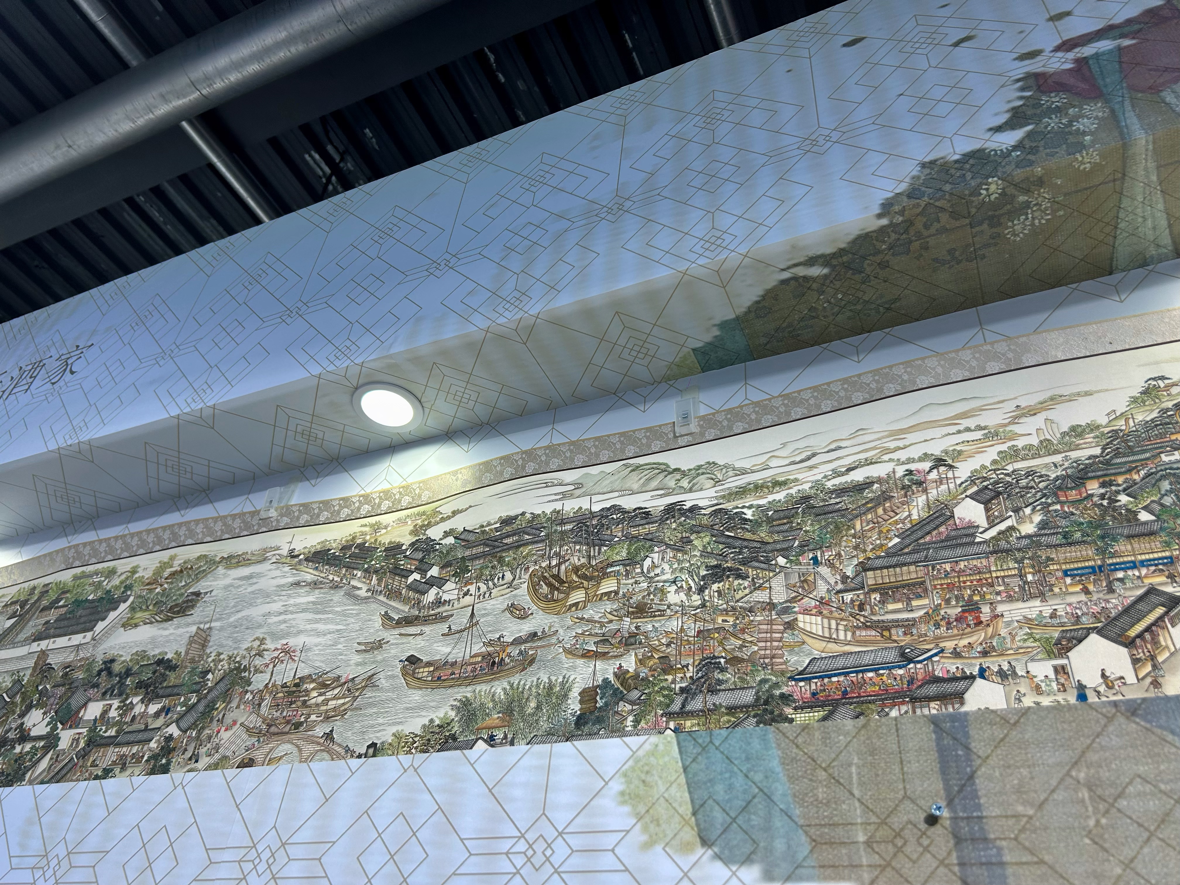 除了用丝线刺绣,用头发做成精致的绣品又是什么模样?现场,东台嘉丽发绣厂带来一幅长达18米的发绣长卷《姑苏繁华图》作答。画面真实再现了姑苏城郊百里的风景和街市的繁华景象,十分壮观。令人惊叹的是,大到远山、绿树、屋顶,小到水纹、人物、服饰,均由头发绣制而成,犹如细腻的工笔画。