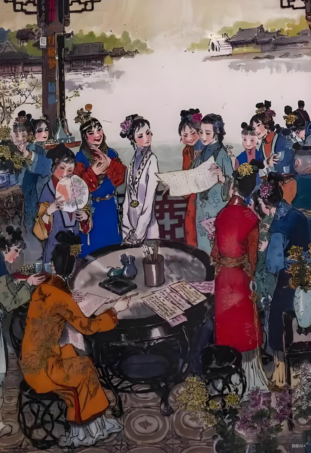 《红楼梦》中的“菊花”则显得更为重要。第三十七回和三十八回,大观园诗社以“菊花”为题,众人写了12首七言律诗。经李纨评定,潇湘妃子(林黛玉)的《咏菊》《问菊》为最佳。石润宏认为,《咏菊》充满对菊自怜的感叹,《问菊》点出林黛玉和菊花一样“孤标傲世”的品格,故而林黛玉的“菊花诗”最能打动人心,让读者产生深深共鸣。