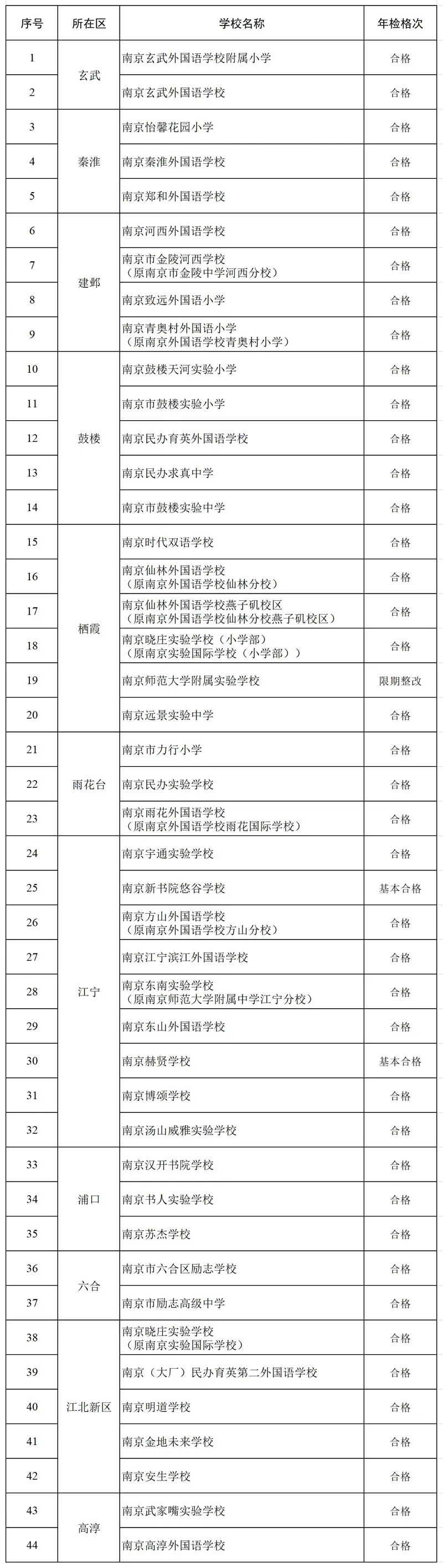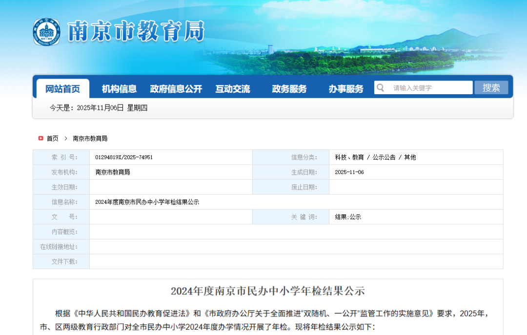 交汇点讯 家门口的民办学校如何?年检达标吗?11月6日,南京市教育局发布《2024年度南京市民办中小学年检结果公示》,涉及各区44所学校。