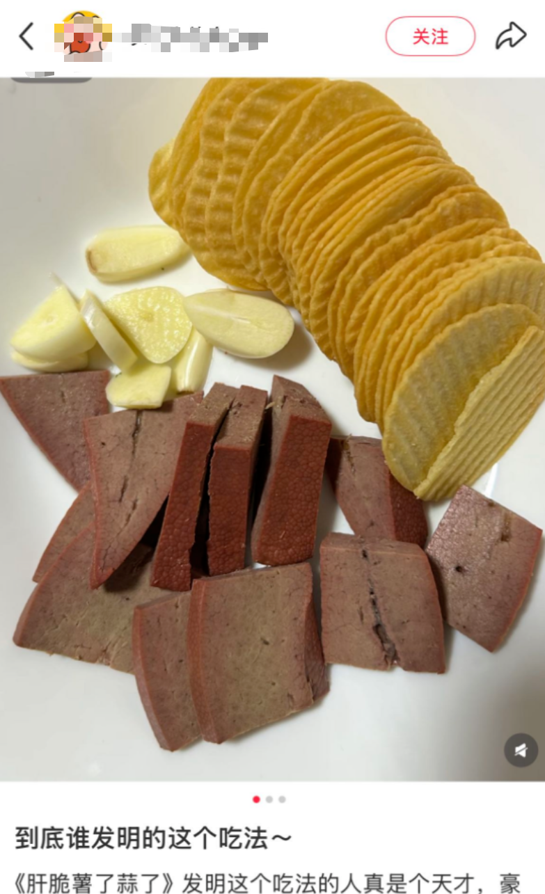 根据《中国居民膳食指南(2022)》的建议,健康成人每月吃动物内脏2~3次,且每次不要过多。每次猪肝摄入最好控制在50克以内,不超过当天的可耐受最高摄入量。同时考虑薯片的健康风险和大蒜的刺激性,建议“肝脆薯了蒜了”每次吃2~3组即可。
