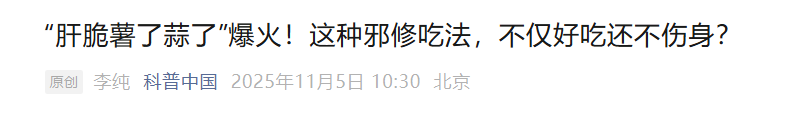 总的来说,作为一种猎奇的“尝鲜”体验,“肝脆薯了蒜了”偶尔少量尝试一次,对身体健康的成年人来说,不会造成长期的健康危害。但不建议将其作为正餐或解馋的零食经常吃,避免高油高盐对身体的持续负担。