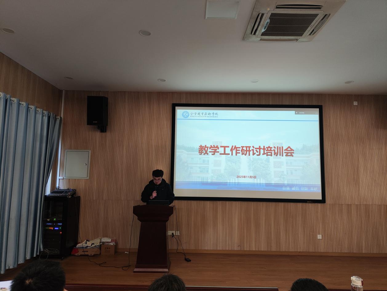 为进一步夯实我校教学管理基础,提升教学工作规范化水平,保障人才培养质量。11月5日,金肯职业技术学院召开教学工作研讨培训会,学校副校长顾亚文、何家林出席会议,专业(群/教研室)主任、专业带头人、专兼职督导、教学秘书、教学条线所有科长及以上行政干部参加会议。本次会议聚焦教学管理核心环节,涵盖教学档案专项培训、岗位实习平台专项培训、科研工作的规范性、树立质量意识、提升质量建设四项议程。