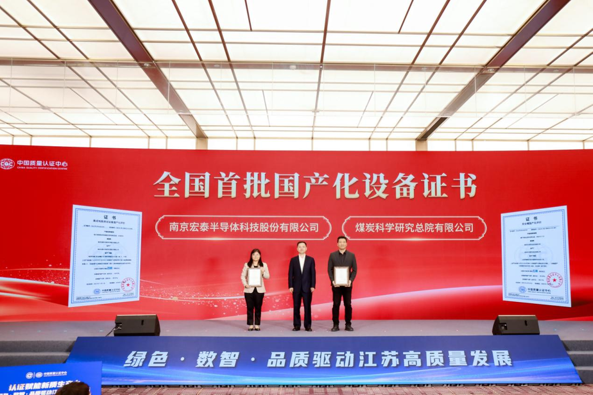 新华日报财经讯 11月6日,2025(第二届)认证赋能江苏高质量发展大会在南京举行。会上,中国质量认证中心(CQC)为南京宏泰半导体科技股份有限公司、煤炭科学研究总院有限公司颁发了全国首批国产化设备证书,标志着我国在关键装备自主可控领域取得重要突破。