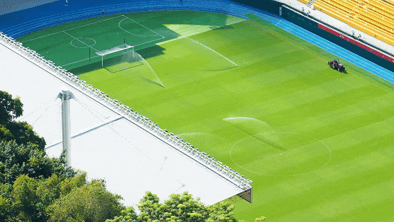 你见过“会呼吸”的草坪吗?这里使用的天然草+人造草融合技术,配有智能温控和立体排水系统——暴雨后20分钟就能恢复如初,确保赛事不受天气影响。