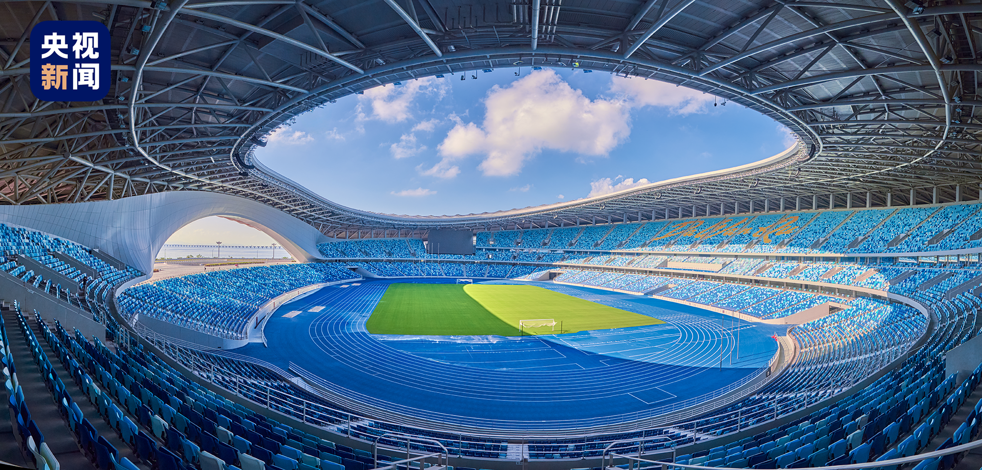 经过升级改造后的广东奥体中心体育场,新造型也很有看点:设计灵感来自“珠水奔流、湾区浪涌”。屋顶像飘带,看台像木棉,广场景观像珠江翻涌的波浪~整体呈现海蓝色调,很有大湾区的氛围感!