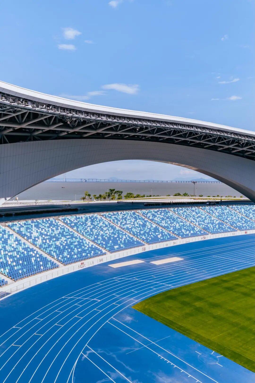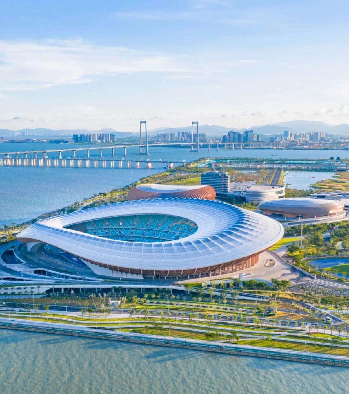 其一大亮点在于综合体育场馆的设计:通过宽约145米、高约22米的大拱架构,巧妙地构筑出“边看比赛边看海”🌊的独特视野。观众于席间可远眺深圳前海、深中通道与无垠大海。