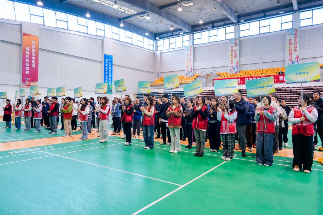 苏州市教育局工会主席在致辞中表示,这项赛事是校际交流的重要纽带,更是激发教职工运动热情的“催化剂”,引导广大教职工以强健的体魄筑牢工作根基,以振奋的精神扛起教育使命,用饱满状态投身于教育事业高质量发展的生动实践中,并希望全体参赛者赛出风格、赛出水平、赛出友谊。朱伟峰代表学院致辞时强调,苏州经贸职业技术学院高度重视体育工作,将教职工身心健康发展摆在重要位置,积极倡导“享受乐趣、增强体质、健全人格、锤炼意志”的运动风尚。