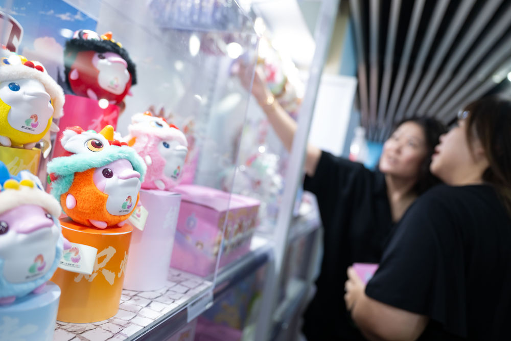 ↑8月1日,市民在十五运会和残特奥会澳门赛区官方特许商品零售店选购。新华社发(张金加摄)