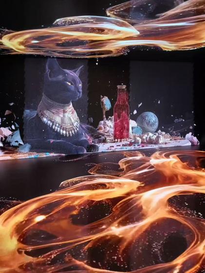 借助数字风格迁移,我们营造出一个沉浸式的幻境,每一次绽放都是独一无二的算法即兴。它不再是挂在墙上被凝视的客体,而是将观众包裹其中的、一个呼吸着的、活着的梦境。古典的“永恒静美”被转化为数字时代的“刹那永恒”——正如内存中的数据,存在过,即构成了一种真实。