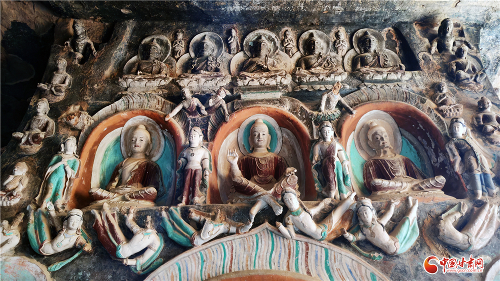 在莫高窟的绚烂经变里,在麦积山的灵动飞天间,在榆林窟的庄严佛像中,在高台博物馆的魏晋砖画上,在嘉峪关墓室的驿使图里,在金塔寺的悬塑飞天旁,在马蹄寺的千年佛光下,在河西走廊星罗棋布的石窟寺内……我们找到了答案。答案关乎多元一体、融合发展,关乎开放包容、交流互鉴,更关乎一代代中华儿女对自身文明的守护、传承与创新。