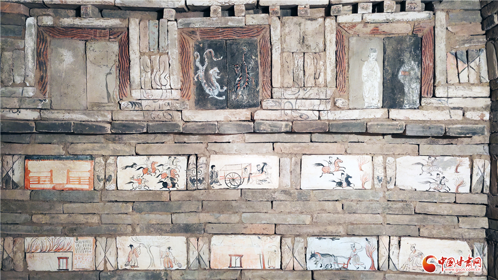 高台县博物馆珍藏的魏晋壁画砖,以简洁灵动的笔触勾勒出农牧耕作、车马出行、歌舞宴乐等生活场景,展现了河西先民真实的生活图景。嘉峪关新城魏晋壁画墓中的《驿使图》,再现了古代丝路驿传系统的高效运作,成为中国邮政的标志性图像。