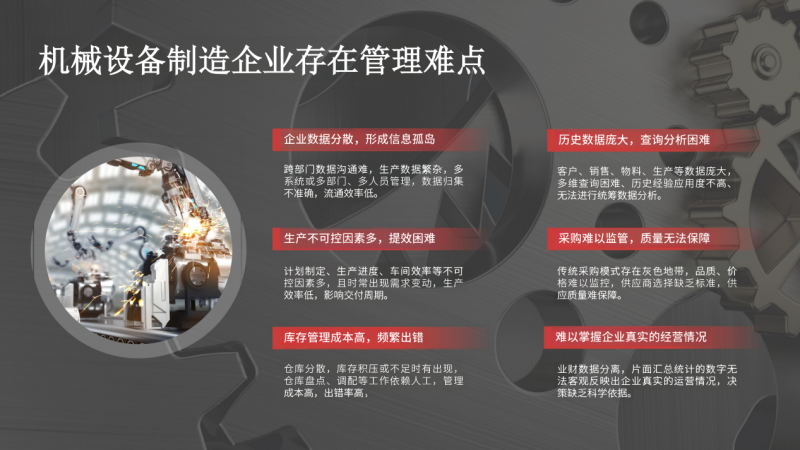 尽管机械设备行业在数智化管理方面取得了一定进展,但仍面临诸多痛点,制约着行业的进一步发展。