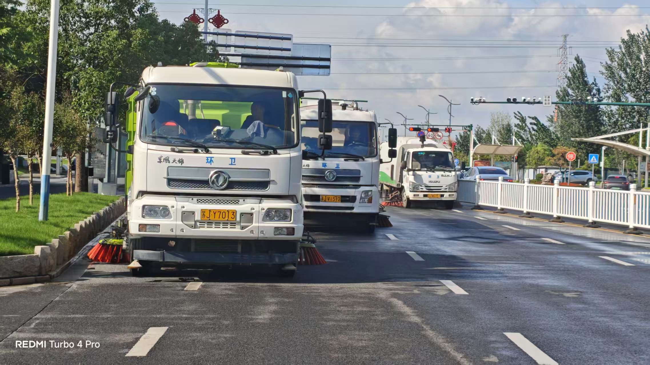 针对秋季主次干道积尘较多突出问题,采用“人机协同+错峰作业”模式,对阜东北路、人民路、S327绕城段等12条重点路段实施“早普扫、午补扫、夜冲洗”三班制作业,日均出动洗扫车14台次,高压冲洗车7台次,作业频次同比增加25%。增加机动保洁力量,增配快速保洁电动车24辆,对机动车道、非机动车道、人行道及绿化隔离带零星白色垃圾进行巡回巡查和快速拾捡,确保路面保持干净清洁。严查建筑渣土运输车辆车轮带泥行驶、渣土跑冒滴漏等污染道路现象,累计查纠违规运输行为40起。
