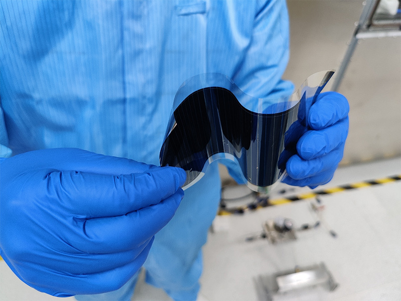 同时,1×2m标准传统的晶硅组件重量约为35公斤,十分沉重,甚至需要装上支架使用。而柔性轻质化钙钛矿组件最大的特点是轻质化、柔性化,每平方米的重量只有几百克。它不仅可以作为建筑材料贴合于工业厂房立面、农业大棚曲面屋顶,克服传统组件在垂直表面应用的限制,还可以在交通领域为新能源汽车、轨道交通提供辅助电力,在消费电子与应急领域其可卷曲、便携的特性也为移动供电与救灾场景带来新的解决方案。
