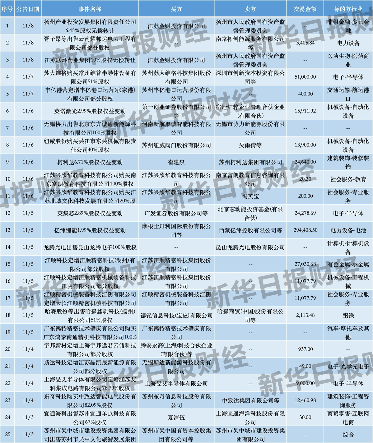 本周并购亮点速览(2025年11月3日—11月9日):