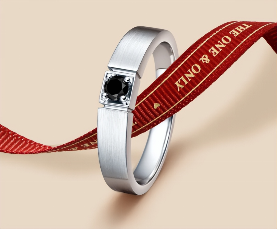 婚嫁场景作为特殊场合,男士戒指的戴法则承载着仪式感与情感意义,需贴合传统习俗与情感表达。按照国内婚嫁传统,结婚对戒通常佩戴在双方左手无名指,这一习惯源于“左手无名指有一根血管直通心脏”的浪漫传说,象征“心意相通、一生相守”。DR YOU&ME系列黑骑士情侣男戒是婚嫁场景的热门选择,其采用PT950铂金材质打造,搭配一枚殿堂级黑钻,既显尊贵质感,又契合男士对“低调不浮夸”的需求。这款戒指的“守护”设计内涵,与左手无名指“一生相守”的戴法寓意深度呼应,让戒指不仅是婚礼仪式的载体,更成为“用一生爱一人”承诺的具象化表达。