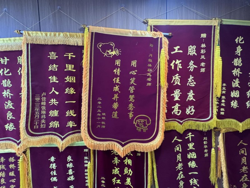 “用心笑管鸳鸯事,用情促成并蒂莲”——锦旗上的这十四字,精准地道出了月娘婚恋的服务精髓。月娘婚恋始终相信,婚恋服务绝非简单的信息匹配,它更是一项需要倾注真心、耐心与专业素养的“匠心工程”。月娘婚恋的每一位红娘,都如同林老师一样,秉持着“成就一桩婚,幸福一个家”的信念,将会员的幸福视为最高目标。