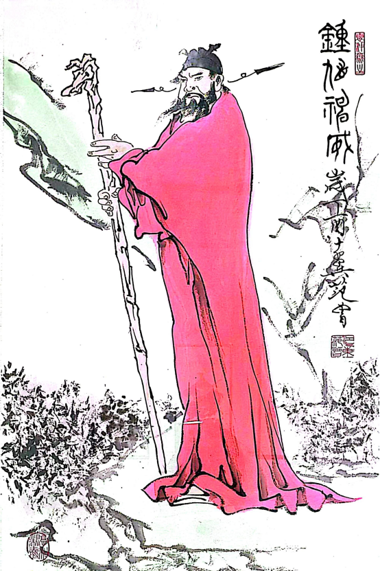 在《钟馗神威》这幅作品前,观者总能被扑面而来的气场所震撼。画面中的钟馗,怒目圆睁,虬髯飞动,右手持剑,左手按腰,姿态雄健,气势凛然。范曾以极具张力的动态构图,将钟馗“驱邪扶正”的神威展现得淋漓尽致,但更精妙的是他对人物内心的刻画——在怒目圆睁的眼神中,藏着对人间疾苦的悲悯;在虬髯飞动的凌厉中,透着对正义的执着。这种“刚中带柔,威中含情”的对立统一,让钟馗不再是传说中冰冷的神祇,而是有血有肉、有情有义的“人间正气代言人”。范曾曾说:“钟馗的怒,是对邪恶的愤怒;钟馗的悲,是对苍生的悲悯。我画钟馗,是画中国人心中的正义图腾。”