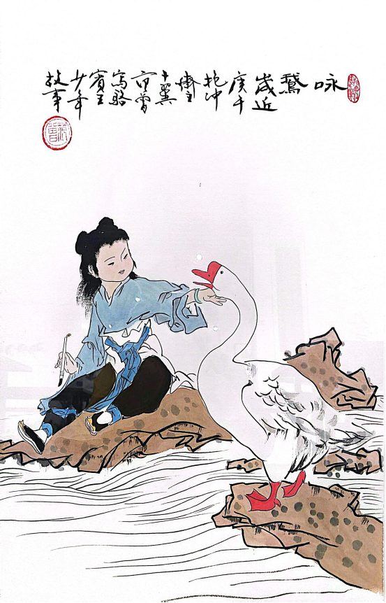 范曾首先是一位诗人,就像他的作品《村书挂角图》画面题识的诗句为:“村书挂角宿缘迟,廿七年华始有师。灯草无油何害事,自烧松火读唐诗。”就充分体现了他的诗文深厚功底做到了“诗中有画,画中有诗”。整幅作品因为这首七言小诗得以升华。