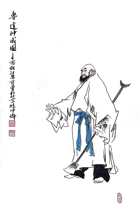 他的书法,本身就是一门独立的艺术。其楷书端庄大气,隶书古朴厚重,行草潇洒飘逸,篆书包孕万千,而将书法融入绘画,更是他的独到之处。他画人物的衣纹,用的是书法的笔法;画山水的轮廓,用的是书法的筋骨;甚至画人物的面部,寥寥数笔,也暗含书法的韵味。这种“以书入画”的创作理念,让他的绘画线条更具生命力,也让画面更具文化底蕴。