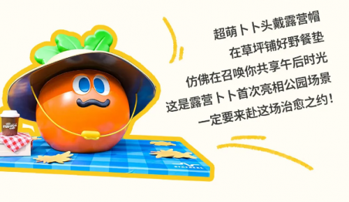 首度亮相的「和卜卜一起公园野餐」装置,更是让无数游客直呼“萌化了”。超萌的卜卜头戴浅色系露营帽,圆滚滚的身形坐在铺好的格纹野餐垫上,身旁摆放着迷你帐篷、水果篮与野餐篮,仿佛在热情召唤人们加入这场秋日野餐。午后阳光洒在装置上,暖融融的色调搭配卜卜治愈的笑容,随手一拍都是自带柔光滤镜的照片,不少亲子家庭在此驻足,小朋友们围着卜卜叽叽喳喳,大人们则趁机记录下这温馨的瞬间。