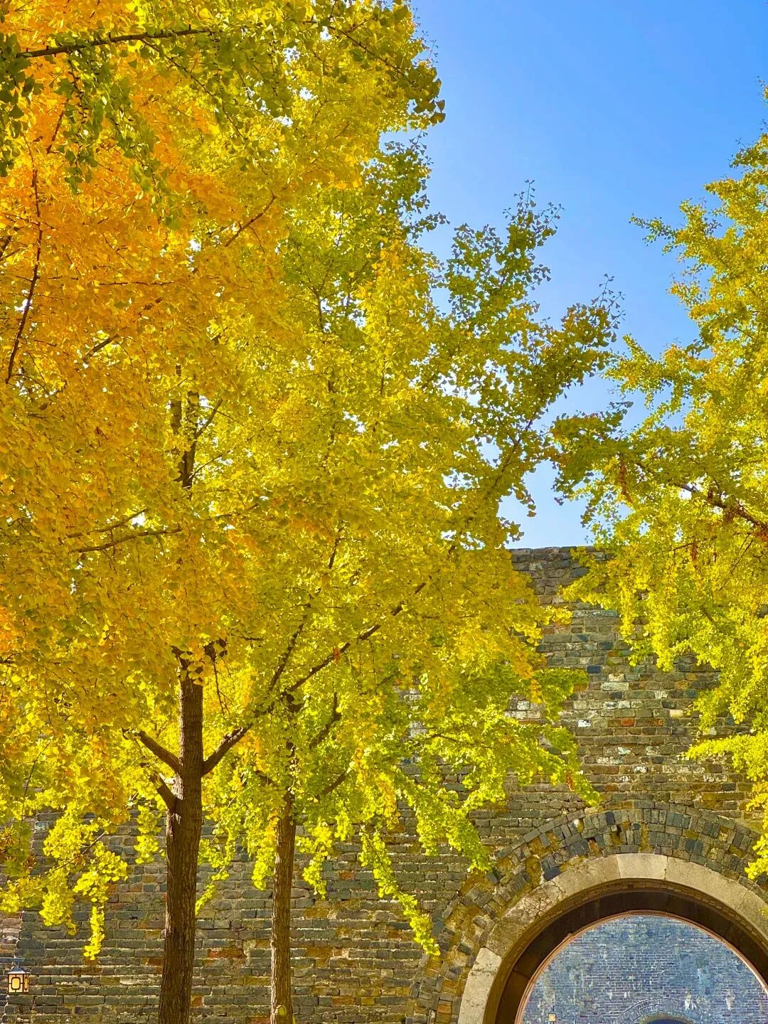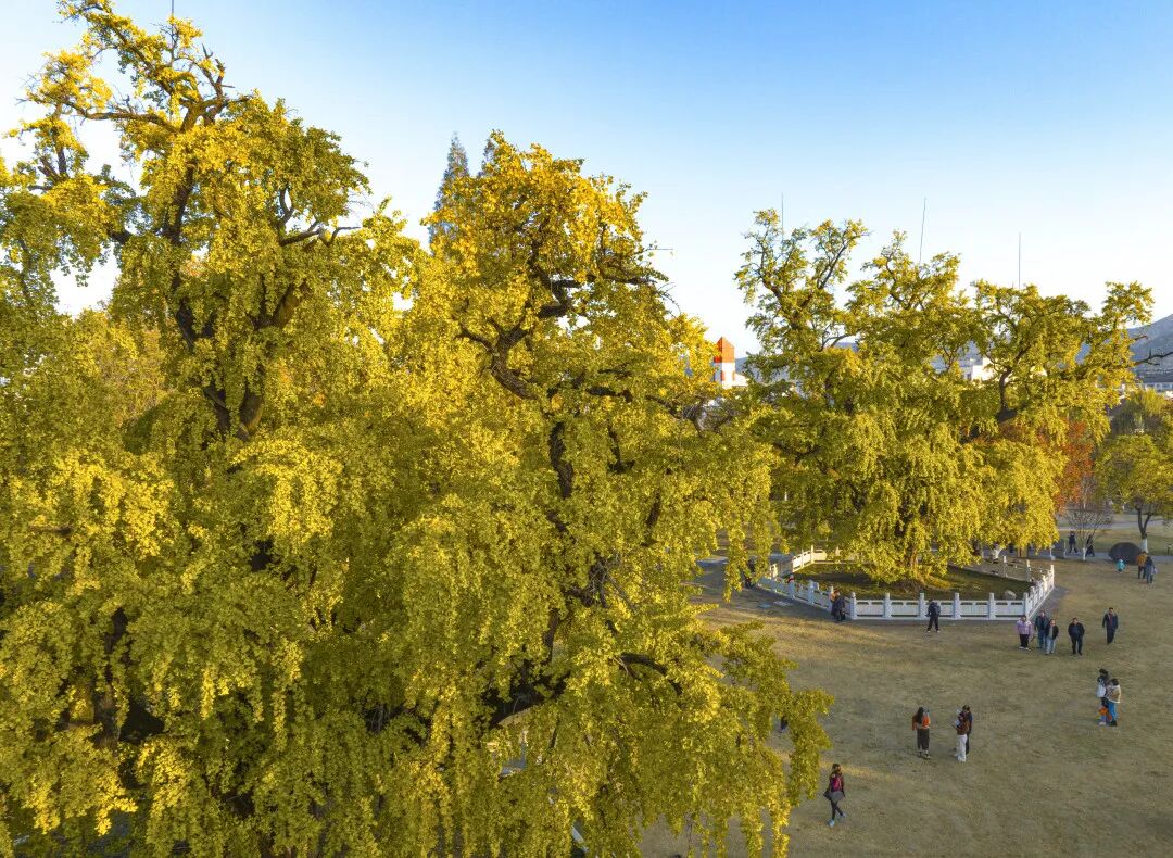 这里,古老的银杏由浅黄逐渐转深,别有一番意境。