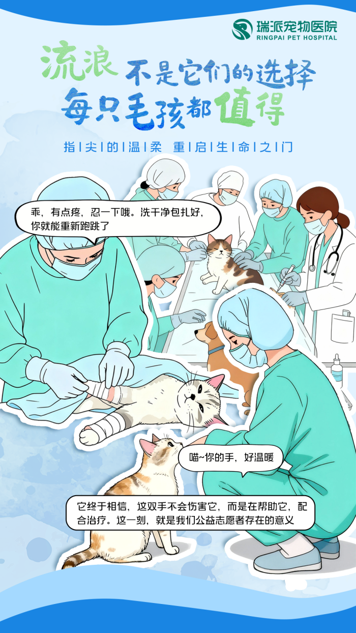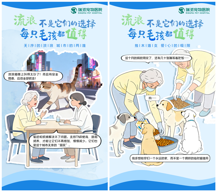 11月15日-12月25日,瑞派将正式开启2025年度公益活动。组建医疗服务团队联合品牌方「探访全国十余所公益基地」进行物资捐赠和驱虫免疫等公益医疗服务;全国百余家瑞派宠物医院上线「公益绝育活动」为流浪动物开启专属绝育服务;在瑞派全国定点门店发放「公益暖冬礼包」,帮助更多流浪动物摆脱饥寒交迫的生活,带来度过这个冬天的希望。同时,线上开启「征集“毛孩暖冬日记”活动」,送出驱虫药品,鼓励爱心人士救助身边小流浪。