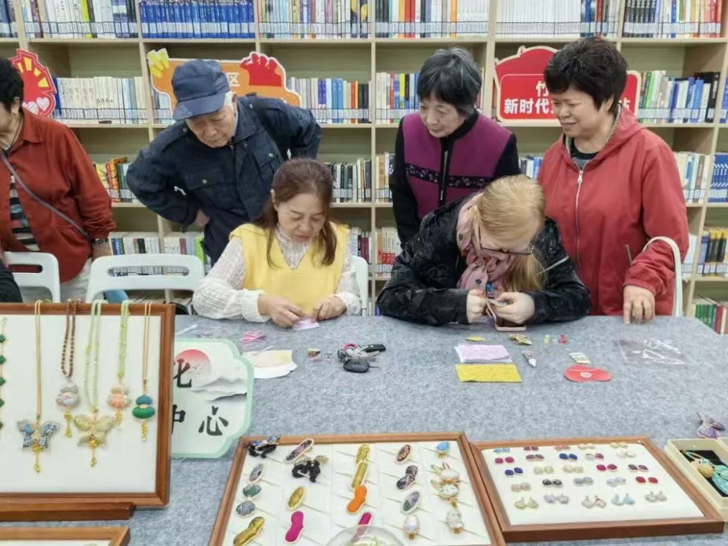 为让非遗成果“走出工作室、走进生活里”,社区还组织义卖走进竹林壹号小区、融入梅亭佳园楼道文化建设、嵌入天宁移动服务厅、带入竹林壹号幼儿园,通过“家门口的非遗义卖”,以“看得见、摸得着”的方式,为再就业成果搭建了展示与转化的平台,让非遗真正走进居民日常生活。