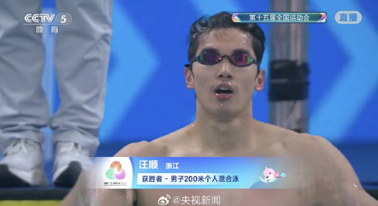 第十五届全运会男子200米个人混合泳决赛,浙江队选手汪顺夺得金牌。这也是他在该项目的四连冠、全运会第18金!恭喜!