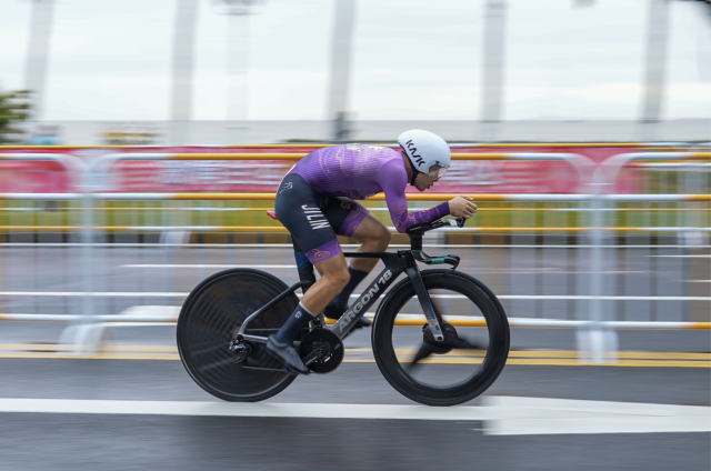 在最受瞩目的男子个人赛上,231.8公里的赛道如一幅徐徐展开的大湾区长卷,让运动员在竞技中穿行于“一边是都市天际线,一边是碧波万顷”的独特景致中。