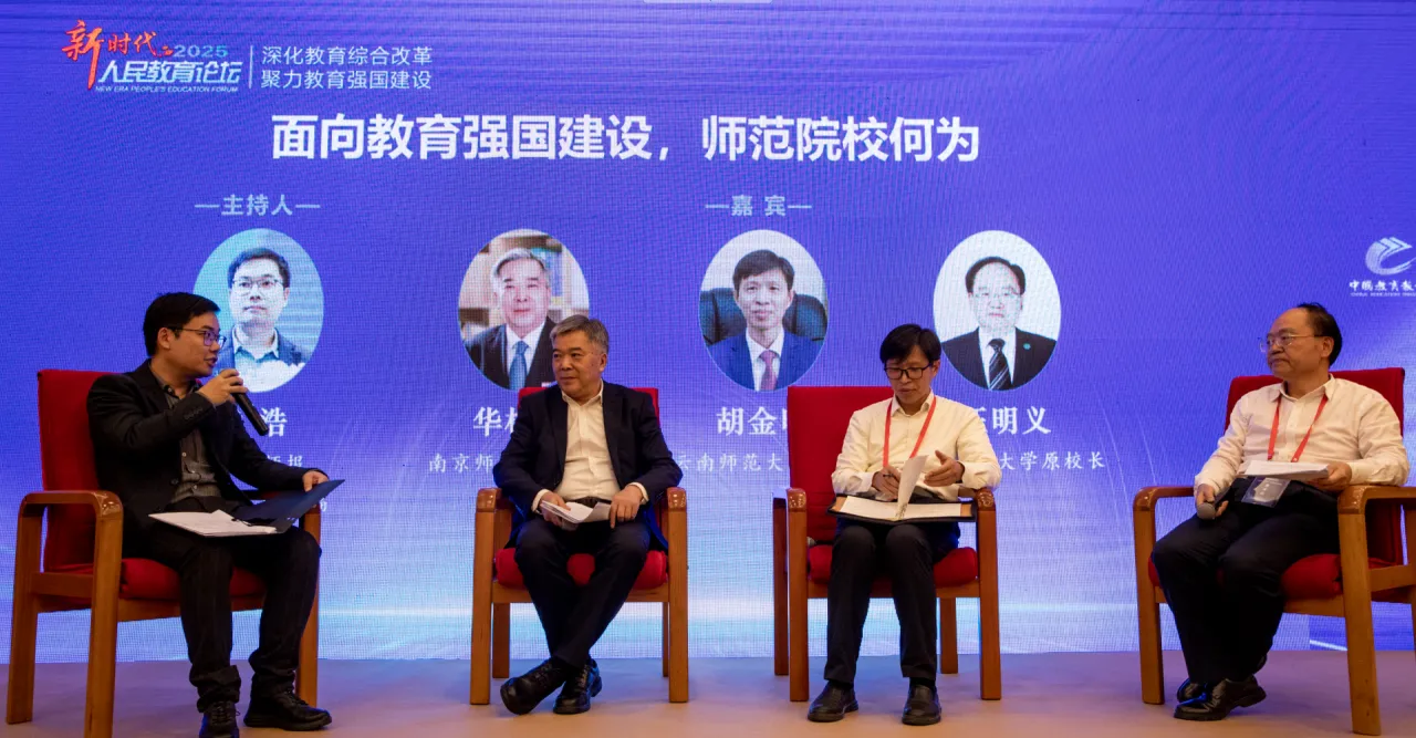 教育强国建设的蓝图中,教师队伍是根基所在。作为做强高等教育“龙头”、夯实基础教育“基点”的核心力量,师范院校正站在政策红利与时代挑战的交汇点。《中国教育现代化2035》明确提出构建“开放、协同、联动”的中国特色教师教育体系,这一体系以师范院校为主体,同时鼓励高水平非师范院校参与教师教育。师范院校怎样在“综合化”进程中坚守初心?近日,在新时代人民教育论坛教师队伍建设分论坛上,多位国内师范院校校长围绕师范性与综合性的平衡等关键问题,给出答案。