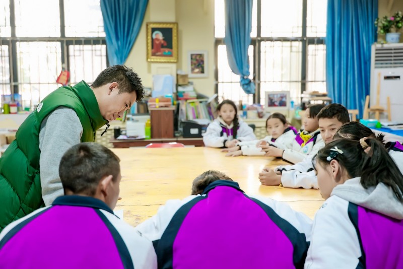 公益团队在学校与部分特殊儿童共同观摩一节特别的美术课。患有听力障碍的宁晓寒是拉萨市特殊教育学校首届毕业生,并被南京特教职业技术学院录取。如今他回到培养自己的母校任教。晓寒老师鲜活生动的肢体语言,承载着疑问、惊叹或温柔。孩子们用全身心倾听,那种专注让每个信息都像种子般落入肥沃的土壤。在手语老师的帮助下,两位支教老师在静默的讲台上也与孩子们进行了一场比言语更深邃的交流。