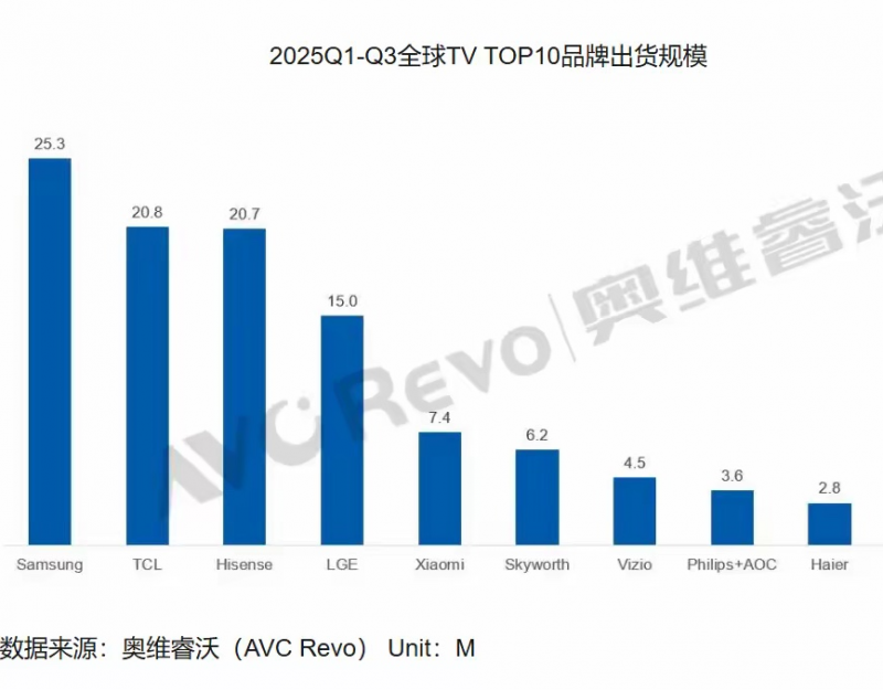 这份优秀成绩单,是TCL全球顶尖实力的缩影——它不仅连续多年稳居全球电视销量前二,其Mini LED电视更已连续两年斩获全球销量第一。权威市场调研机构奥维的数据可进一步佐证这一实力:TCL在今年Q1-Q3全球电视出货量达20.8万台,既延续全球出货量前二的领先态势,更成功摘下国产品牌销量桂冠。从全球市场到本土主场,全方位展现出强大的行业统治力。
