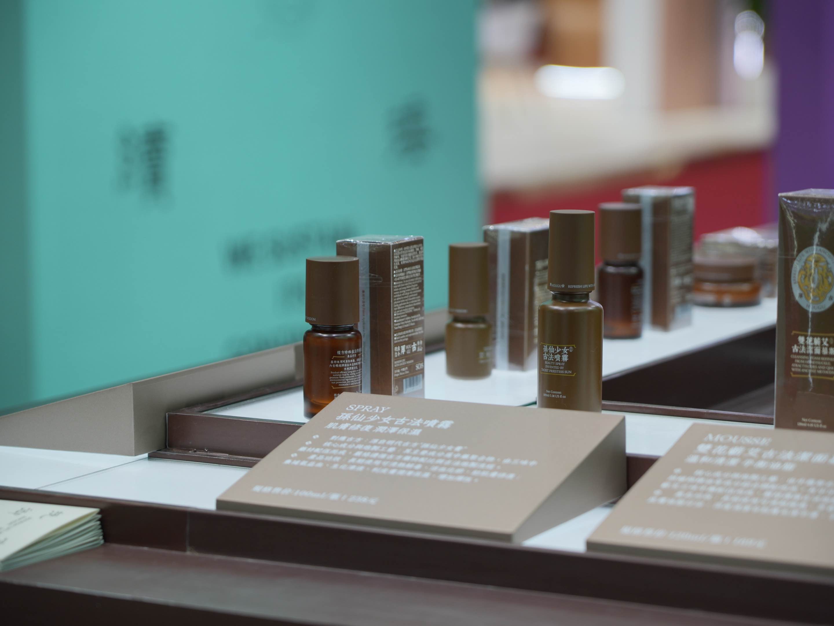 本次展会,厚古旗下七款产品全面亮相,包括金玉古法星宿面脂、鹿角胶古法九宫眼霜、八白古法八风精华、正气香、孙仙少女古法喷雾、双花蕲艾古法洁面慕斯、复方珍珠古法防晒霜。产品以中药聚合物作为核心功效成分,通过配方的协同增效来调理气血、平衡阴阳,从而改善肌肤状态,具有一品多效、内外兼修的功效优势。