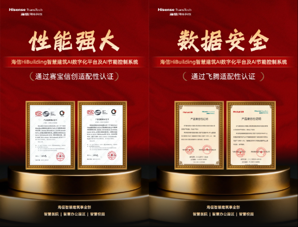 对智慧建筑行业的用户来说,选择获得信创认证的海信智慧建筑解决方案,能够实现建造成本、运营效率、信息安全与合规的有机统一。其智能系统、运营逻辑建立在自主可控的技术底座上,所有数据都在自主可控的平台上流转,更有利于充分释放数据价值,为建筑的节能优化、预测性维护等提供决策支持,让建筑越用越智慧。