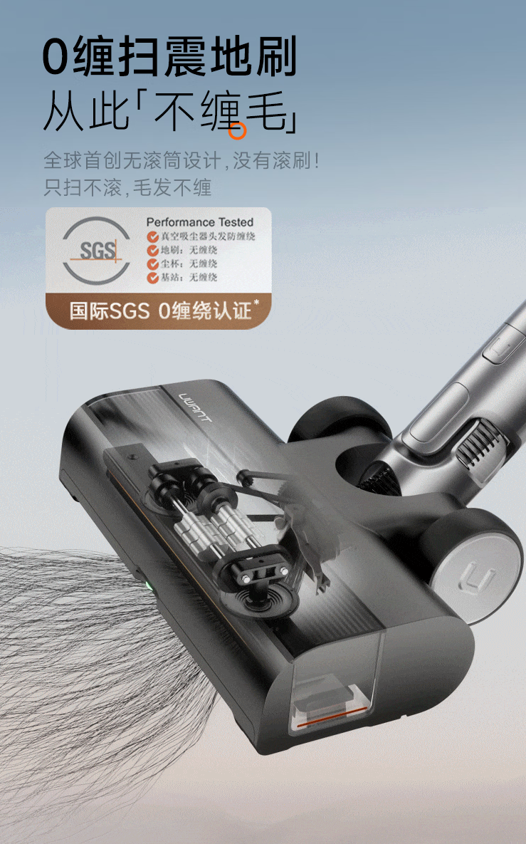 核心逻辑:通过缩小吸口与滚刷的间距,减少毛发缠绕空间,理论上让毛发 “直接吸入” 而非 “缠绕停留”。