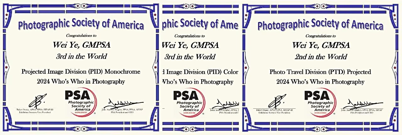 在国际摄影界享有盛誉的美国摄影学会(PSA)年度“名人录”(Who's Who)评选结果于近日揭晓,中国摄影家叶蔚凭借其卓越的摄影艺术成就,一举荣获彩色组(全球第3名)、黑白组(全球第3名)及旅游组(全球第2名)三个组别的“十杰”称号,成为全球摄影界瞩目的焦点。这一殊荣不仅是对叶蔚个人艺术生涯的极高肯定,更是中国摄影艺术在国际舞台上的一次重要绽放。
