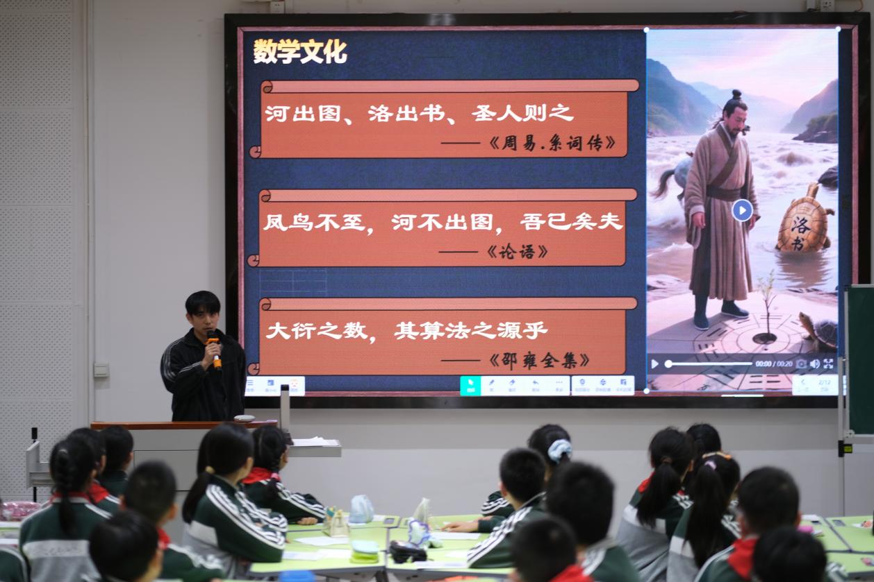 当“洛书”的古老回响在校园再度响起,六年级同学们跟随周炼老师,开启了《从洛书到幻方,一场跨越千年的数字对话》之旅。这堂课上,学生们不再是规则的被动接受者,而是化身“小小数学家”,在动手实践与动脑思考中,自主探寻三阶幻方的数字排列奥秘,更勇敢挑战高阶幻方的构造。整堂课,孩子们沉浸在数字的魔力之中,在这场跨越千年的对话里,深刻体会到数学作为世界性语言的独特魅力与强大力量。