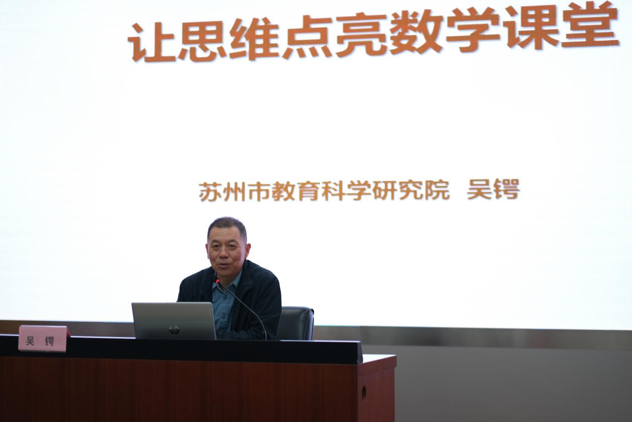 以思维之光,照亮数学课堂。江苏省数学特级教师、正高级教师、原苏州市教育科学研究院中学数学教研员吴锷带来题为《让思维点亮数学课堂》的深度讲座。他开篇引述数学家傅种孙先生“不在知其然,而在知其所以然”的教育箴言,鲜明指出数学教学的真谛在于“示以思维之道”,并强调实现这一目标的核心,在于教师既要“真会”学科本质,又要“会教”思维方法。