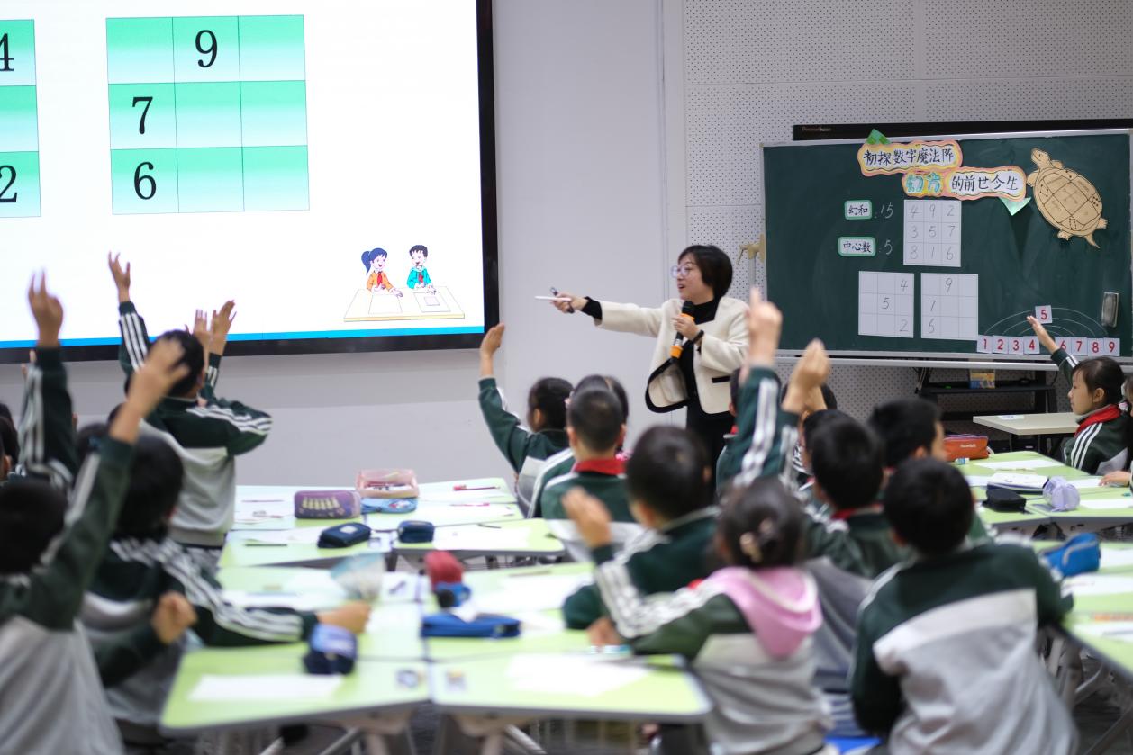 星湾学校何雅俊老师为四年级学子带来一堂别开生面的数学课——《初探“数字魔法阵”——幻方的前世今生》。课程以古老“洛书”传说为引,将数学知识与历史人文故事巧妙融合,带领孩子们走进数字对称与组合的奇妙世界。课堂上,老师循着“故事引导—规律探索—动手创造”的探究脉络,让孩子们在破解九宫格奥秘的过程中,既掌握了填数技巧,更真切触摸到古今数学家的智慧,感受到东西方文化的交融之美。孩子们兴致盎然、思维迸发,在神奇的“魔法阵”中完成了一次精彩的数学时空穿越。