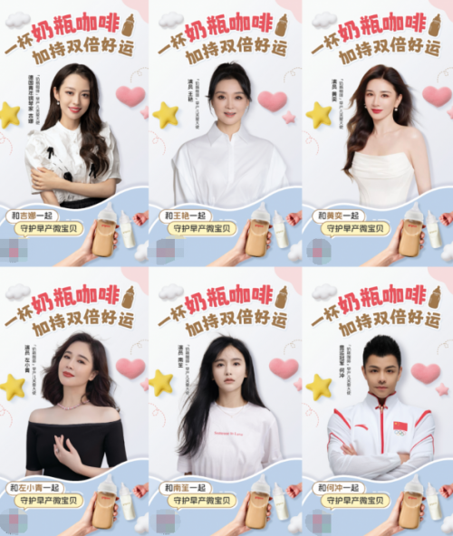 同时,活动也得到了多位热心于公益事业的明星名人积极响应,青年钢琴家吉娜、演员王艳、黄奕、左小青、南笙、奥运冠军何冲等成为「奶瓶咖啡」早产儿关爱大使,在小红书、微博等平台积极发声,呼吁更多人关注和了解早产儿群体。