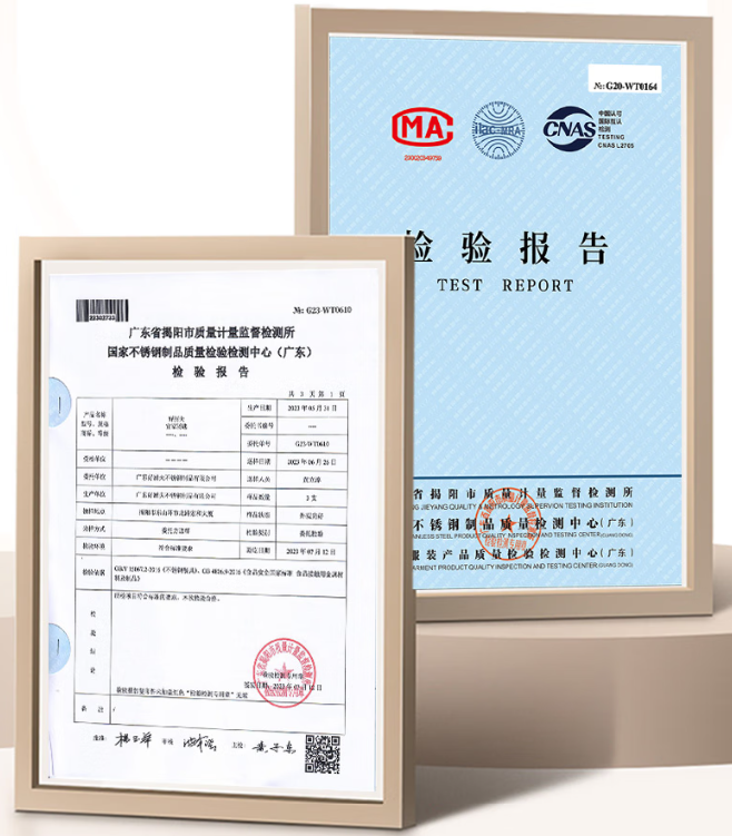 生产完成并不意味着品质管控的结束。好厨夫建立了完善的出厂检测体系,每一款产品出厂前,都要经过“双重检测”:先是企业内部质检部门对产品的外观、尺寸、功能进行初步检查,比如锅具是否有划痕、餐具边缘是否光滑、小工具是否好用;随后,抽样产品送往国家不锈钢制品质量检验检测中心(广东)等第三方机构,进行重金属含量、耐酸碱性能等专业检测,只有拿到合格的检测报告,产品才能正式上市。消费者购买时,扫描产品包装上的二维码,就能查询到对应的检测报告,真正实现“检测透明化”。