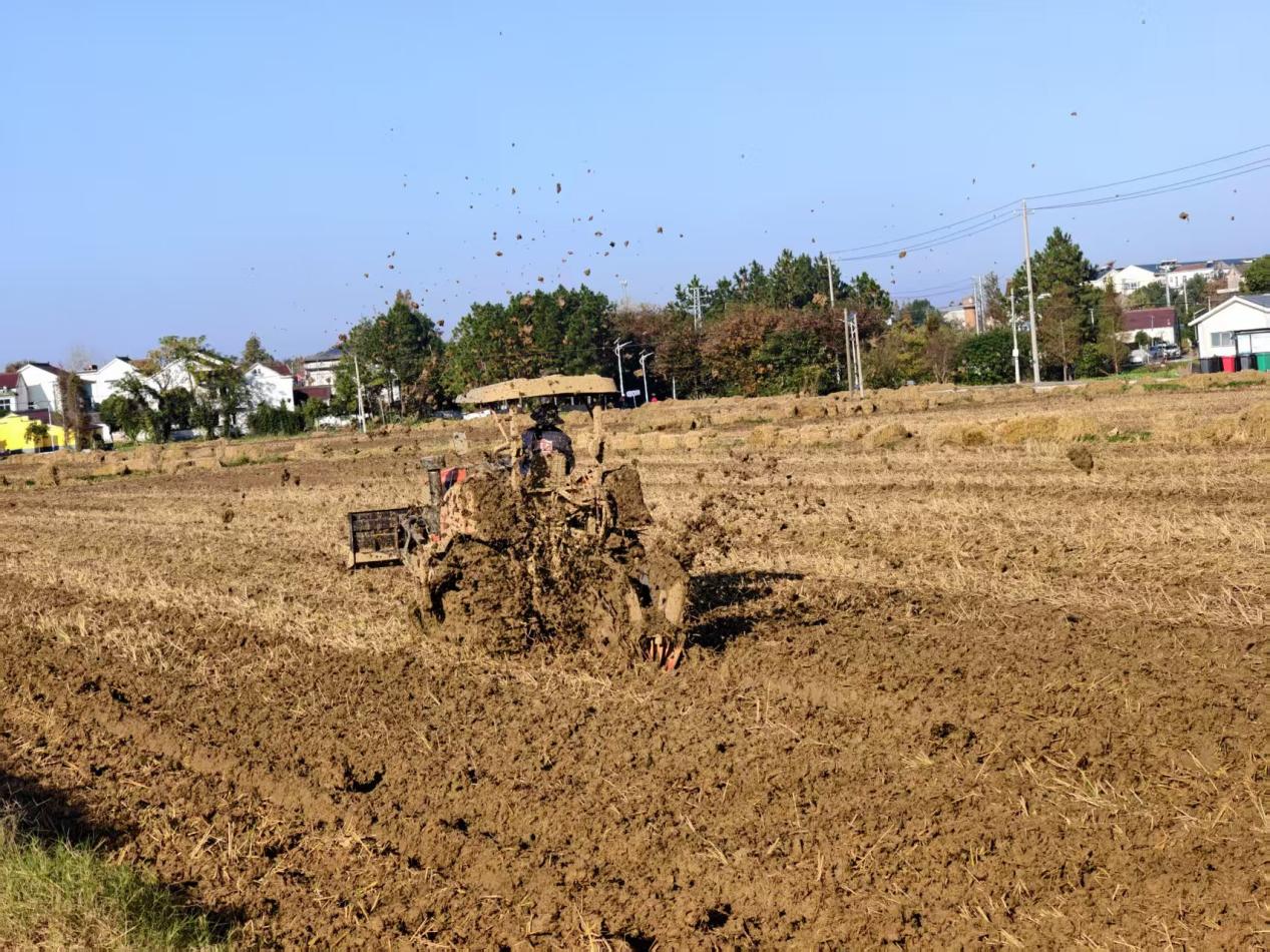 金黄的稻茬还带着秋收的余温,河南村的田野里又响起了机械轰鸣。近日,河南村承包户的旋耕机“突突”地碾过连片农田,进行土地深翻、碎土整平,为冬小麦播种做最后准备。